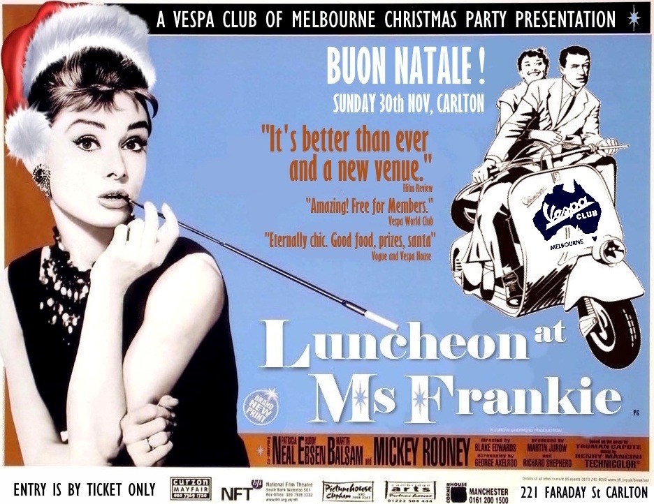 You're a financial member of the Vespa Club of Melbourne. Let's party! Your ticket = Food service, Christmas thank you gift, chance for prizes.