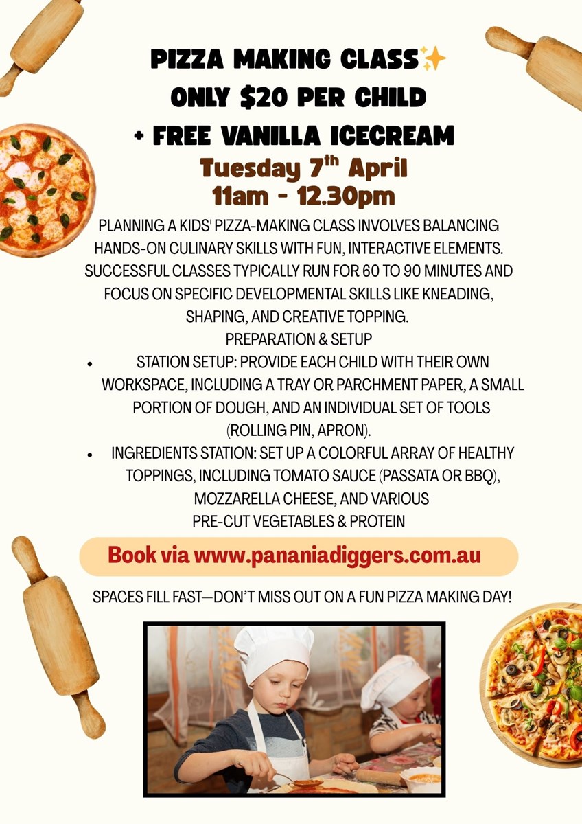 Tuesday, 7 April 2026 from 11:00 AM to 12:30 PM (AUS Eastern Standard Time) + Add to calendar07/04/2026 11:0007/04/2026 12:30Australia/SydneyPizza MakingPizza Making