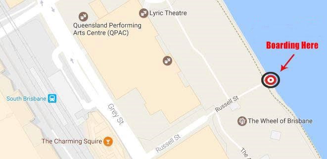 • South Bank Parklands, Terminal A End of Russell St pathway where it meets the river in South Bank near the Wheel if Brisbane.