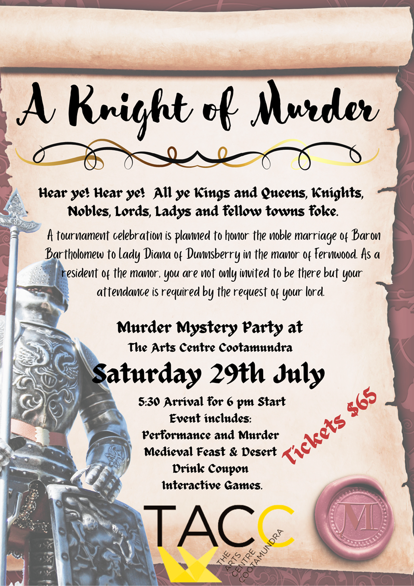 Saturday, 22 July 2023 from 5:30 PM to 10:00 PM (AUS Eastern Standard Time) + Add to calendar22/07/2023 17:3022/07/2023 22:00Australia/SydneyA Knight of MurderA Knight of Murder