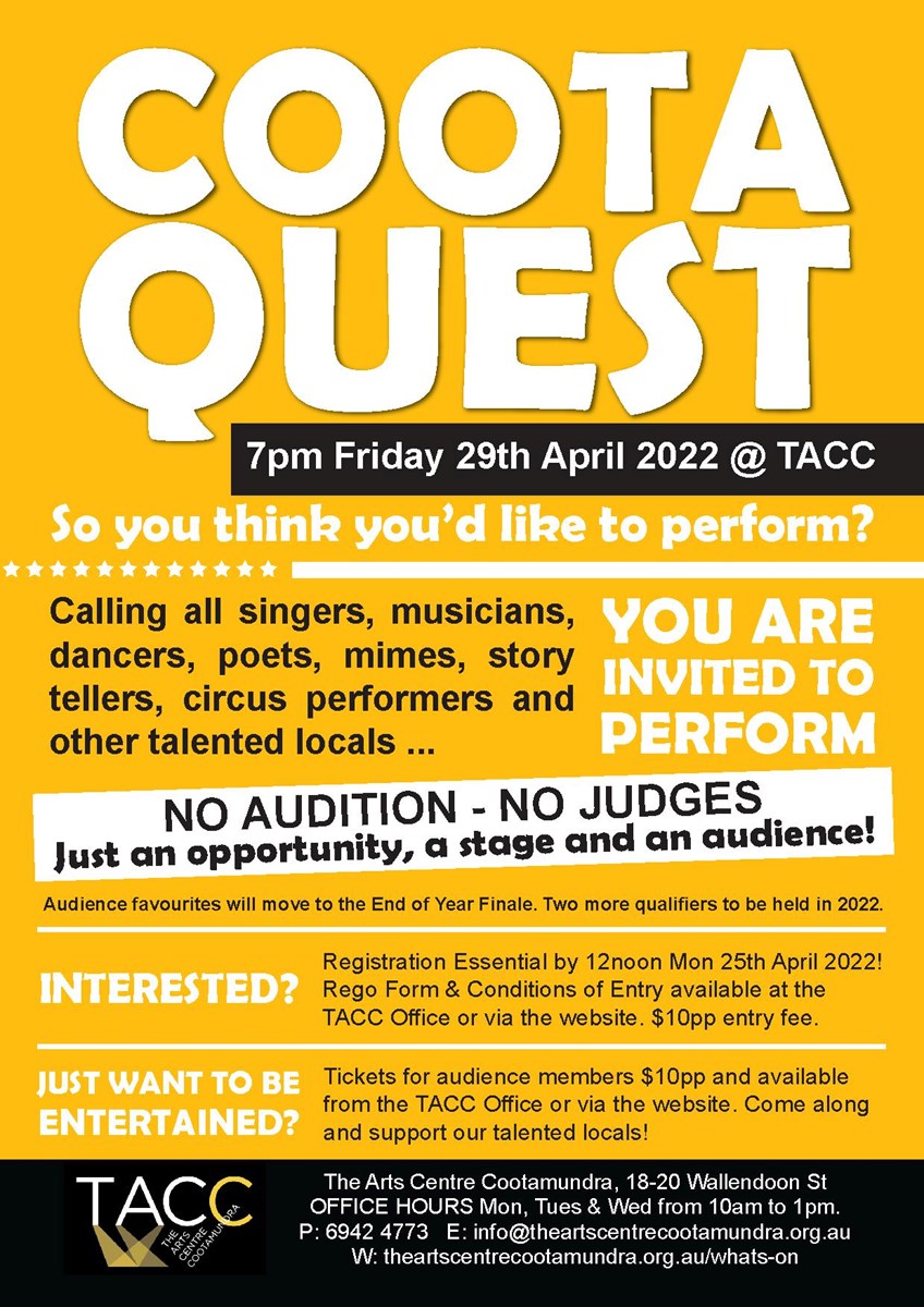 Event web page: https://www.stickytickets.com.au/u3557The Arts Centre Cootamundra