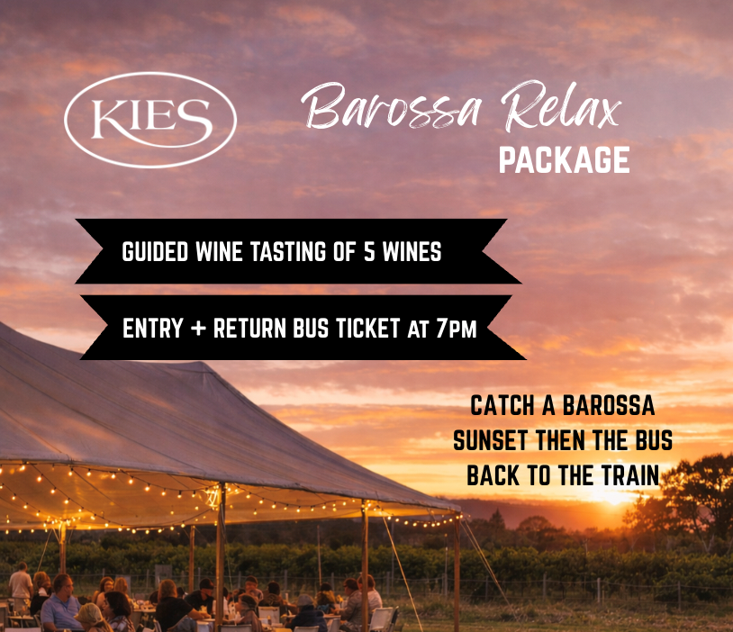 ✔ Guided tasting of 5 wines ✔ Entry to the lawns & Barossa experience ✔ Kies Family Wines Souvenir Picnic Cup ✔ 5:30pm return bus included ✔ Back in time for your 7pm game