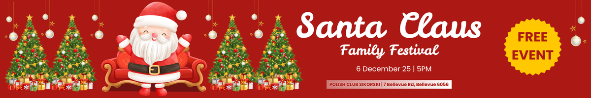 Saturday, 6 December 2025 from 5:00 PM (W. Australia Standard Time) + Add to calendar06/12/2025 17:0006/12/2025 17:00Australia/PerthSanta Claus Family Festival at Polish Club SikorskiSanta Claus Family Festival at Polish Club Sikorski